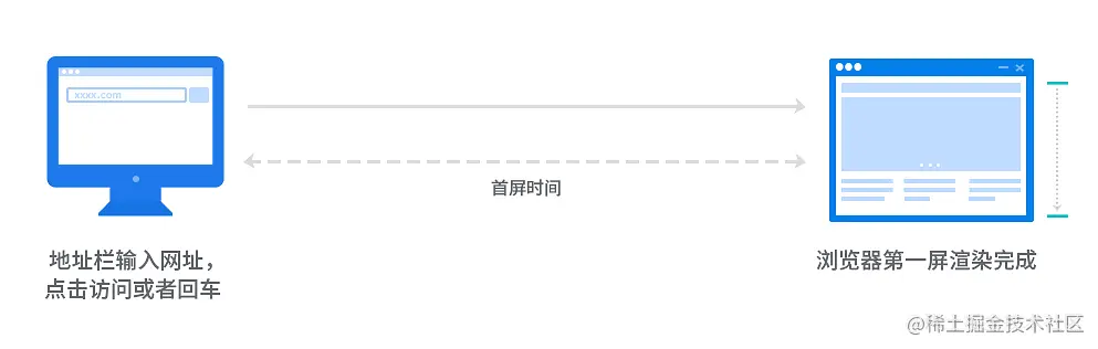 首屏时间是指浏览器从响应用户输入网络地址,到首屏内容渲染完成的时间。