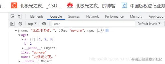 此时再用上面那种方法就不行了,如果obj只改变像 name 这种属性还没问题,但是当 obj 改变得是像 num 这种引用类型(对象、数组都是引用类型)的数据时,拷贝的对象还是能被影响,因为浅拷贝只能拷贝一层,如果拷贝的对象里还有子对象的话,那子对象拷贝其是也只是得到一个地址指向而已。这通过上面代码也能看出,就一层循环而已。想要真的达到我命由我不由天的话得用深拷贝,真正的刨根问底。深拷贝见第三大点。下面介绍下浅拷贝常用的方法,当对象只有一层的时候还是用浅拷贝好。