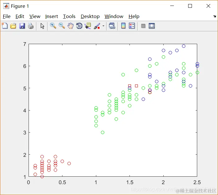 数据的处理:我这里是从已知样本中各选取一半,一半用来做测试样本,即Iris_test,一半用来做训练,即Iris_xun,而且训练样本前25个是第一类,26-50是第二类,51-75是第三类。请看代码时时刻记得。