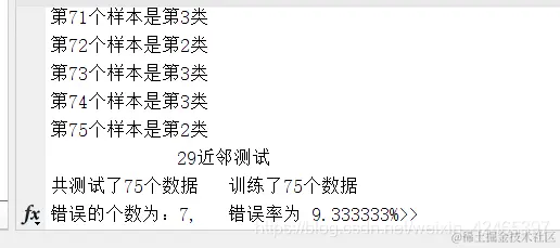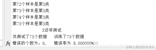 fprintf('第%d个样本是第%d类\n',i,inde_fin);
