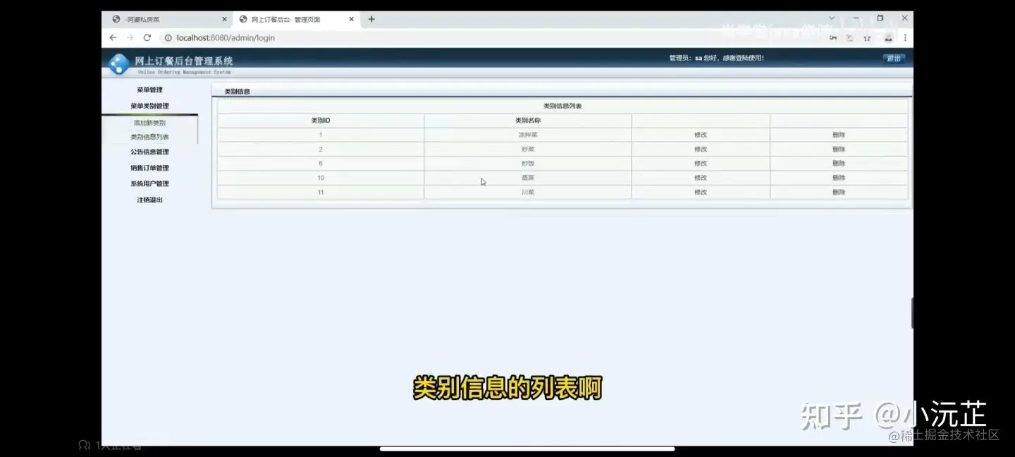 管理员:菜单类别管理:对菜单类别进行增删改查的操作