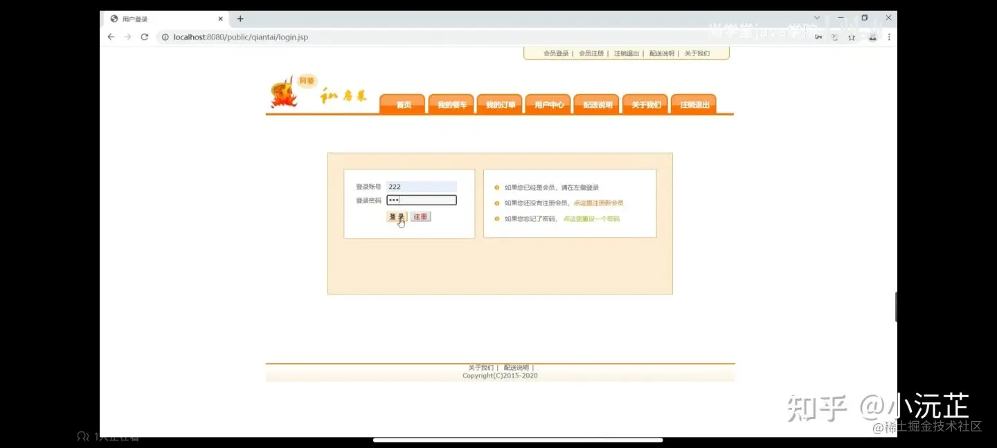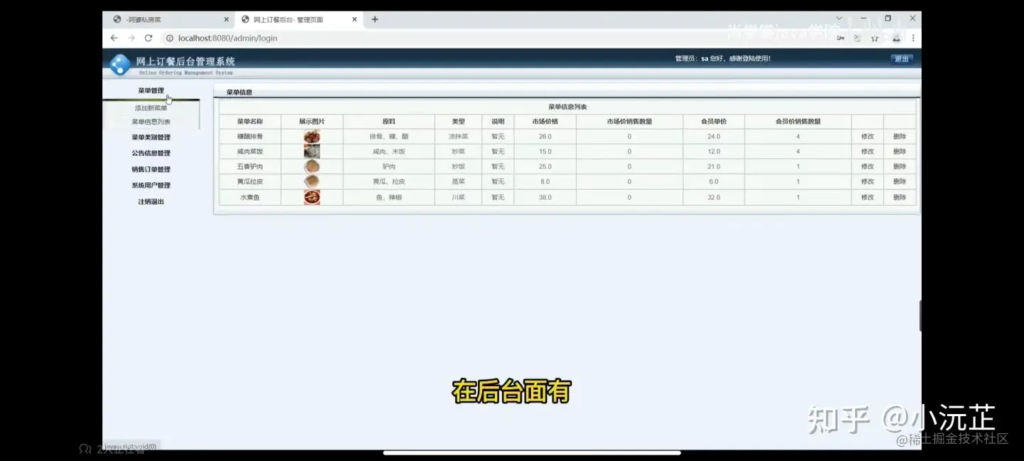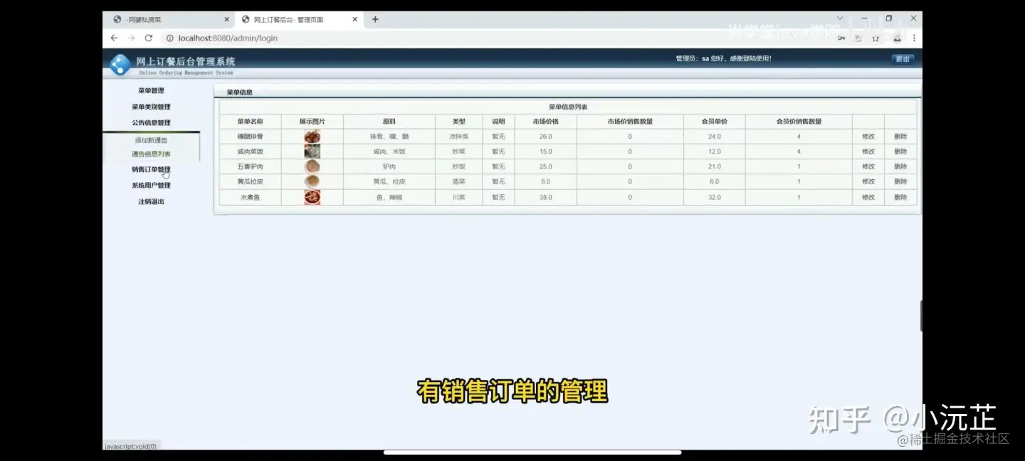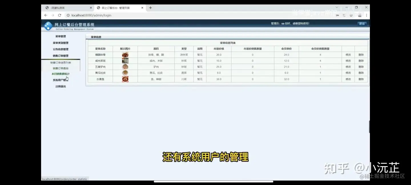 基于SSM框架实现一个网上点餐系统,包括用户端和管理员端; 前台主要功能有用户注册, 用户登录, 我的购物车、我的订单、用户中心、我的餐车,配送说明等; 管理员端主要功能有:菜单管理、公告管理、销售订单管理、系统用户管理等