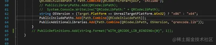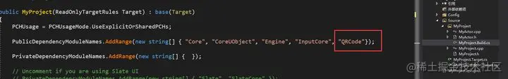 打开 .sln 文件,在 Build.cs 中添加 QRCode 依赖库,之后点击生成。