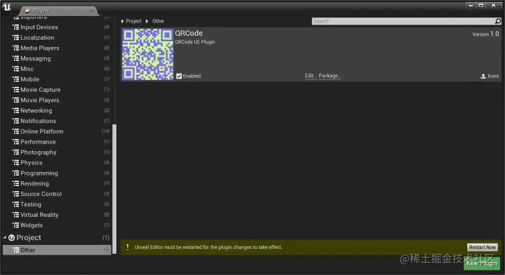 按照提示将插件拷贝到 Plugins 目录中,重启 UE4 Editor ,激活插件并重启。