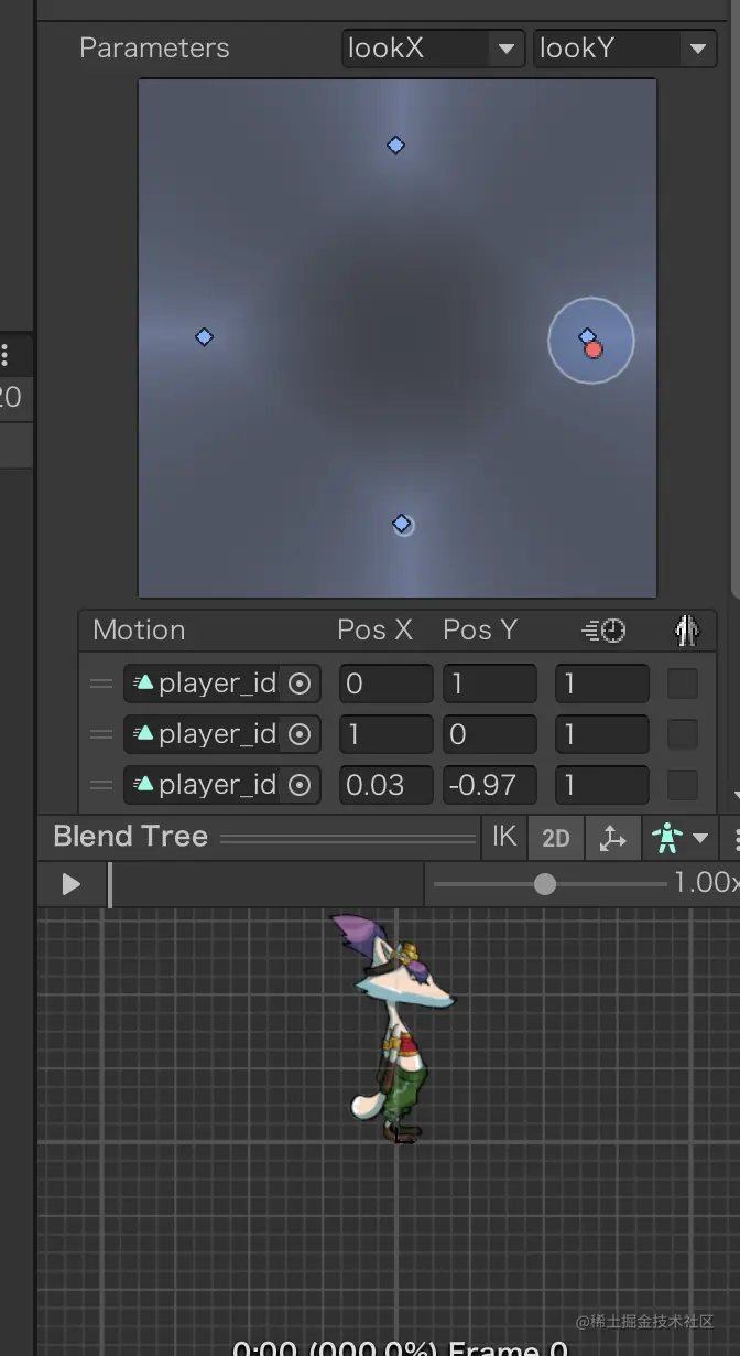四个剪辑动画设置好后,需要修改player控制器。