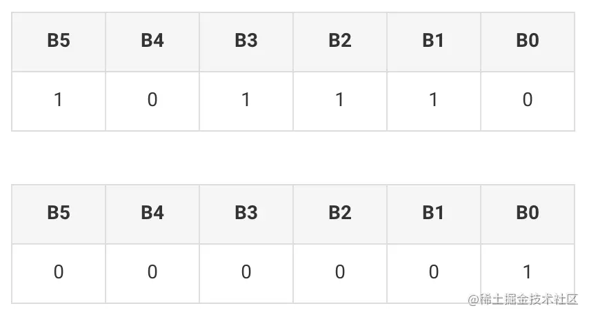 先看每个数字对应的真实二进制是多少: