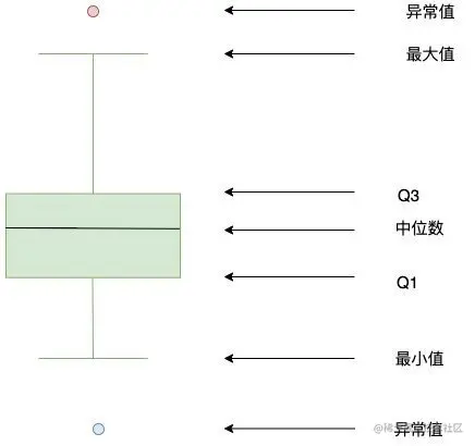 四分位数是箱型图中最为重要的概念。Q3和Q1的差距称为四分位距(InterQuartile Range, IQR):IQR=Q3-Q1