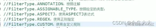 上面的type属性是指定按什么方式过滤,FilterType.ANNOTATION是以注解的方式,而还有好多属性