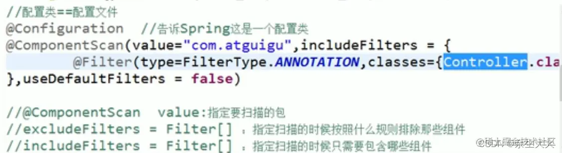而includeFilters是只扫描那些包,并且需要配置属性useDefaultFilters为false