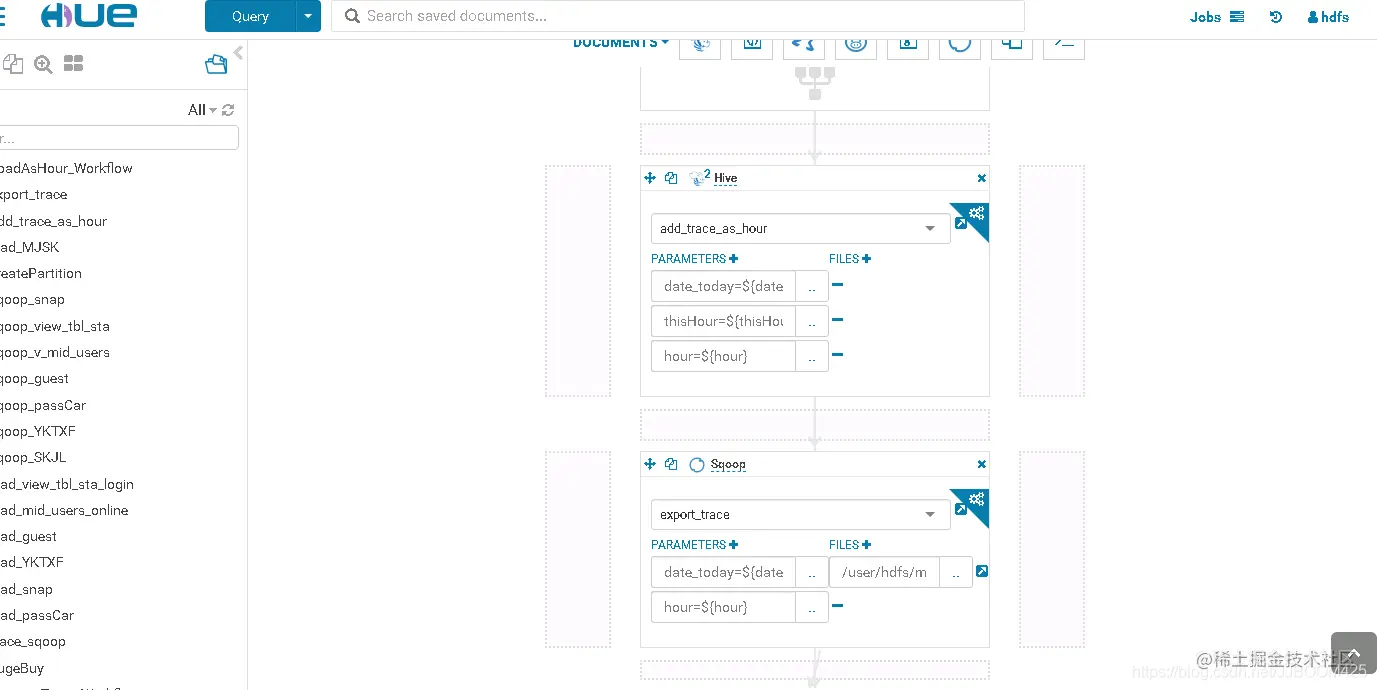 C.这两个都写好了,就可以在HUE上的WorkFlow中配置工作流了: