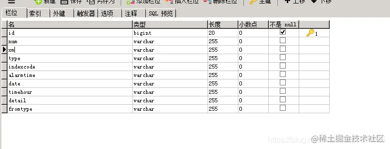 然后同样要在mysql中创建同样字段与属性的对应表: