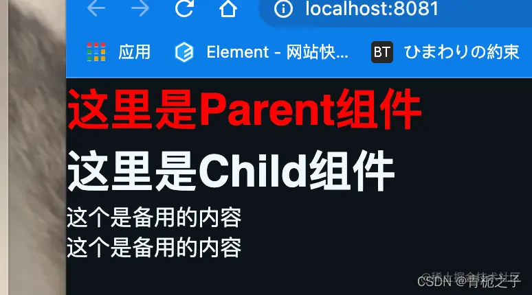当然,如果Child组件中没有这个标签的话,那么在Parent中的中的全部内容都将作废。