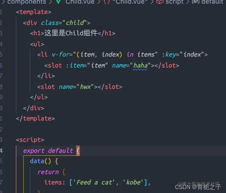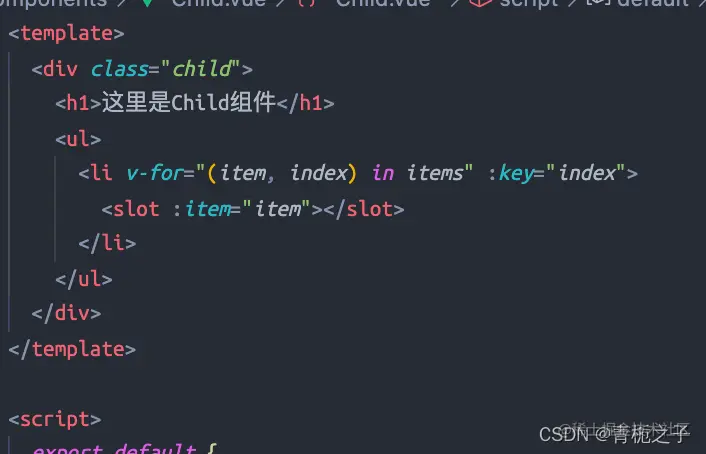 此时child.vue中的slot的属性是item而不是item1.由此可见,通过解构的方式,就无须像上面那样去命名,然后点出来了,不仅简洁而且节省时间。