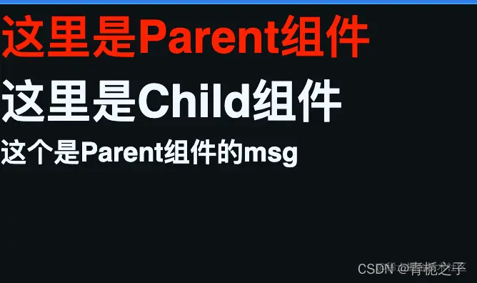意思就是,要想引用在Parent组件中的中使用Child组件中的data中的值的时候,不能够直接通过{{}}拿到,而是要经过一些处理才可以。具体见下面的例子: