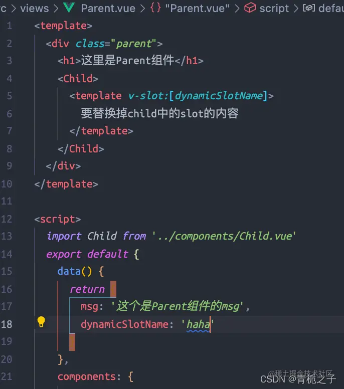 其实很简单,这个动态插槽名的意思就是:子组件中已经有定义好了的,有名字的slot了,在父组件中,只需动态更改这个插槽的名字就可以实现覆盖不同的slot
