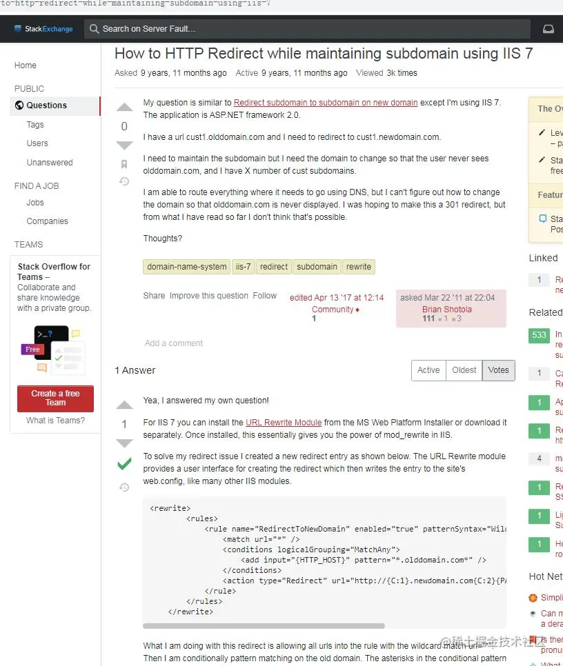 注意301重定向的配置参数中虽然也有<rewrite>标签,但是它并不是“url重写”,这两者是不一样,注意区分。<``action type``="Redirect" url="xxx">和区别