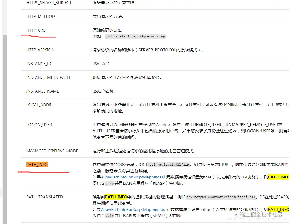 里面的<action type="Redirect" url="http://{C:1}.newdomain.com{C:2}{PATH_INFO}" appendQueryString="false" /> 标红的PATH_INFO不知道大家有没有注意到。这个代码使用了后参数会丢失。也不难理解,这个是表示路径,于是我想应该有表示参数之类的变量,而这个应该是有个一整套的大写字母表示的环境变量,我要找到带参数的环境变量,应该是REQUEST之类开头的?我不好意思再麻烦哥们了,人家都去吃饭了,后面得靠自己了,我想应该会存在一篇文章专门介绍这些大写的变量,而这个页面应该包含PATH_INFO和我要的表示参数的未知变量名,于是我在百度用关键字“PATH_INFO iis7”搜,怎么也搜不到我要的信息,都是无关信息。
