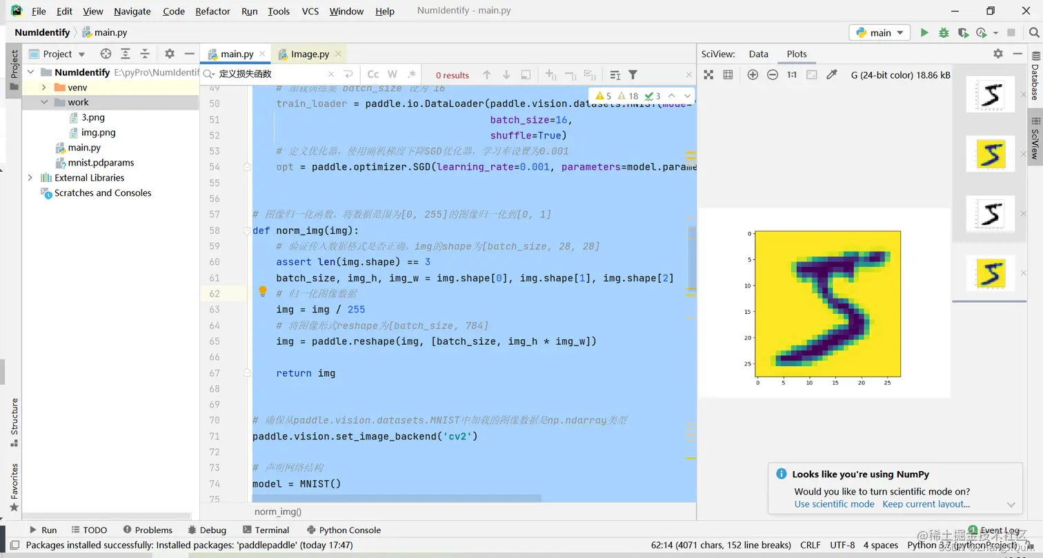 # 确保从paddle.vision.datasets.MNIST中加载的图像数据是np.ndarray类型