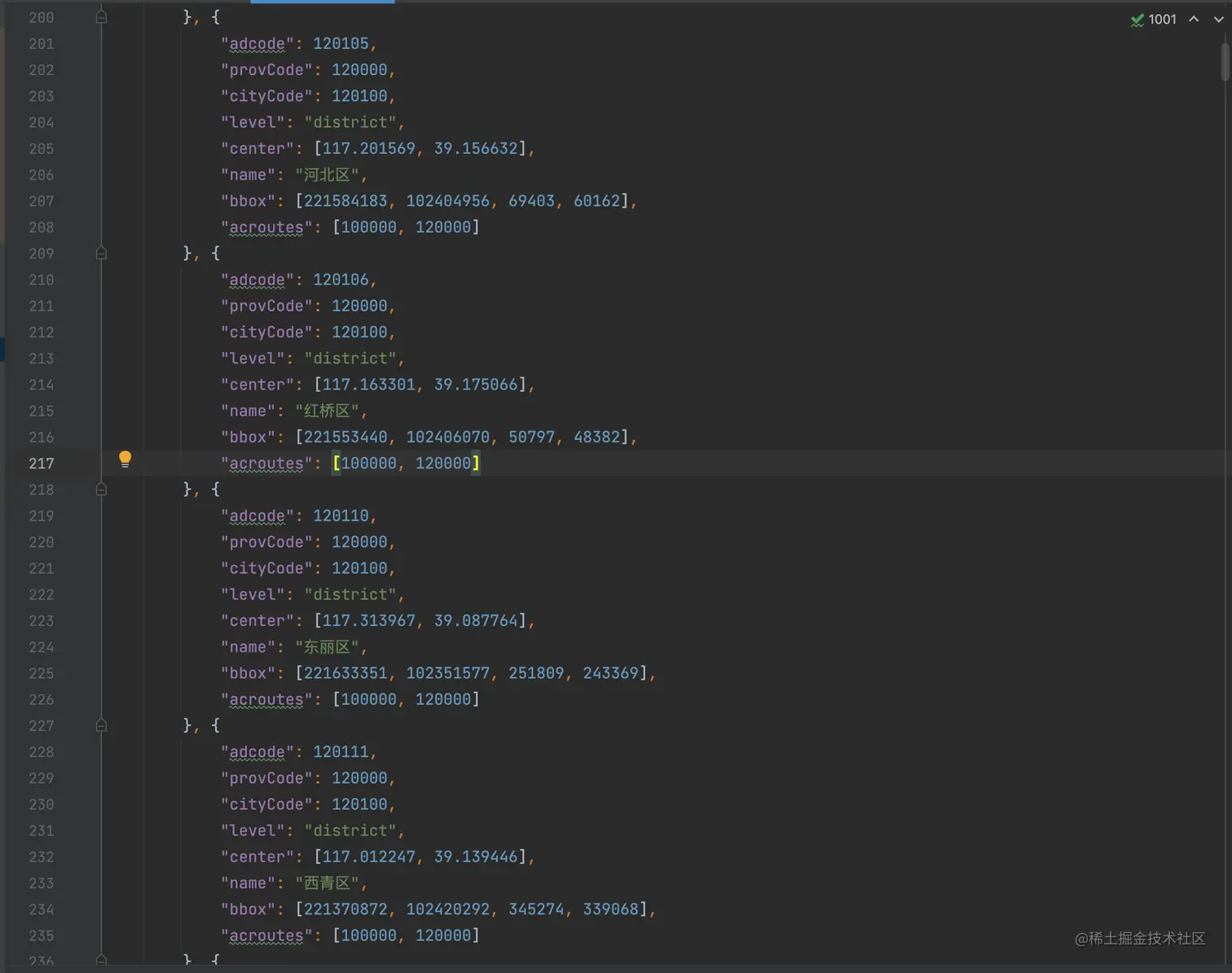 - 城市省市区编码JSON数据