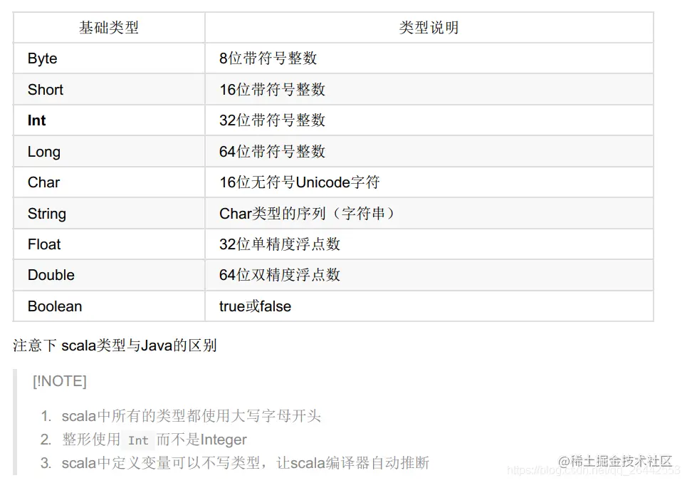 因为Scala底层是Jvm,所以Scala和Java一样,有7种数值类型Byte、Char、Short、Int、Long、Float和Double(scala里无包装类型)和一个Boolean类型(都是大写的类型),其他Java支持的数据类型如String类型,Scala一般都支持。但是跟Java不同的是这些都是类,可以直接调用内嵌方法,比如:1.toString(),返回一个字符串1。在Scala里并不刻意区分基本类型和引用类型。