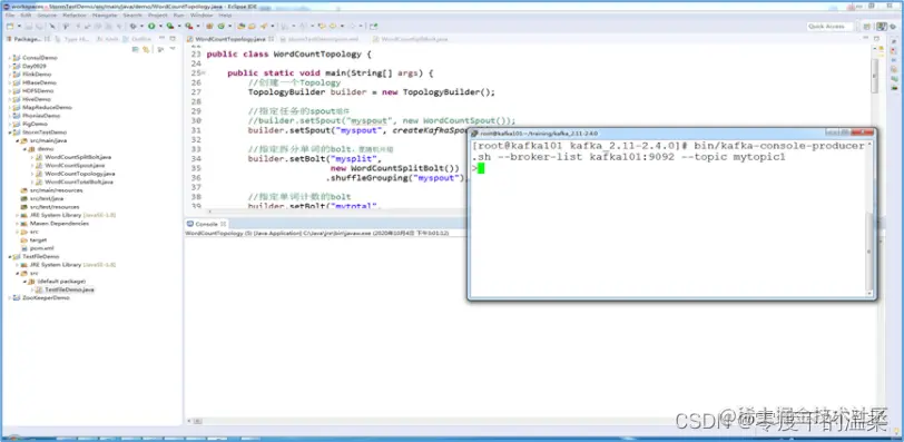 在了解上面的过程后,我们可以改造一下之前的Topology主程序的代码,创建一个新的Bolt任务,将任务处理完成的数据输出到Kafka中,下面列出了改造后的代码程序。