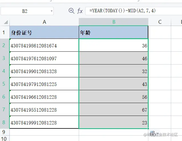 虽然公式有点复杂,小编找到这个公式的第一反应是:这些数字是什么意思?不过后面搞懂了之后就觉得这个公式非常好用了,身份证号码提取年龄的公式已经深深烙印在我的脑海里啦!你们呢?