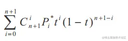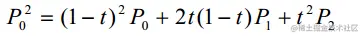 以二次Bezier曲线为例,其中的n表示从哪个点作为起点,i表示i次,两个直线相连次数加1: