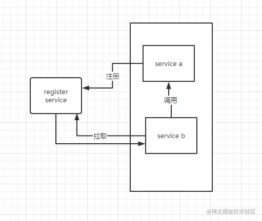 假设我们有服务A需要调用服务B,并且有服务注册发现组件R。整个大致流程将变成大概3部: