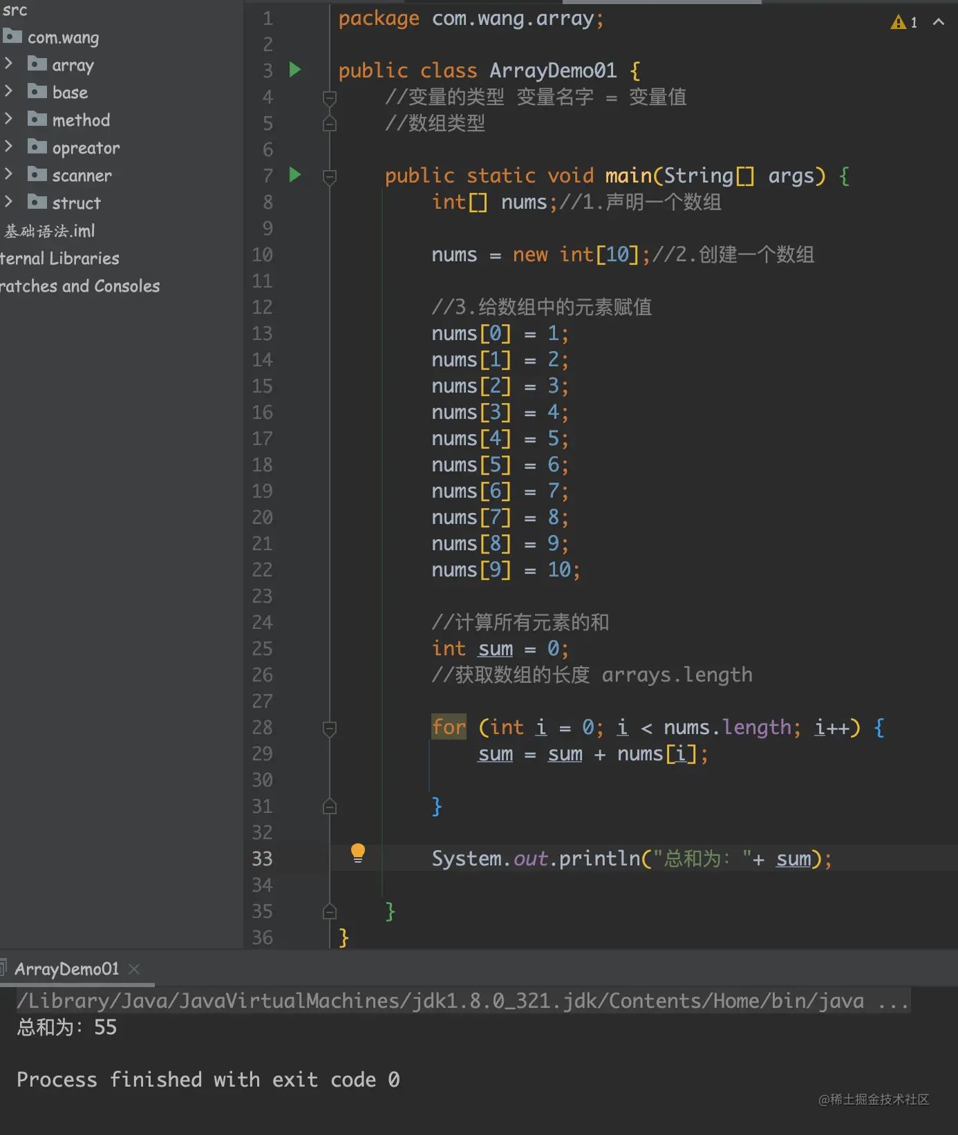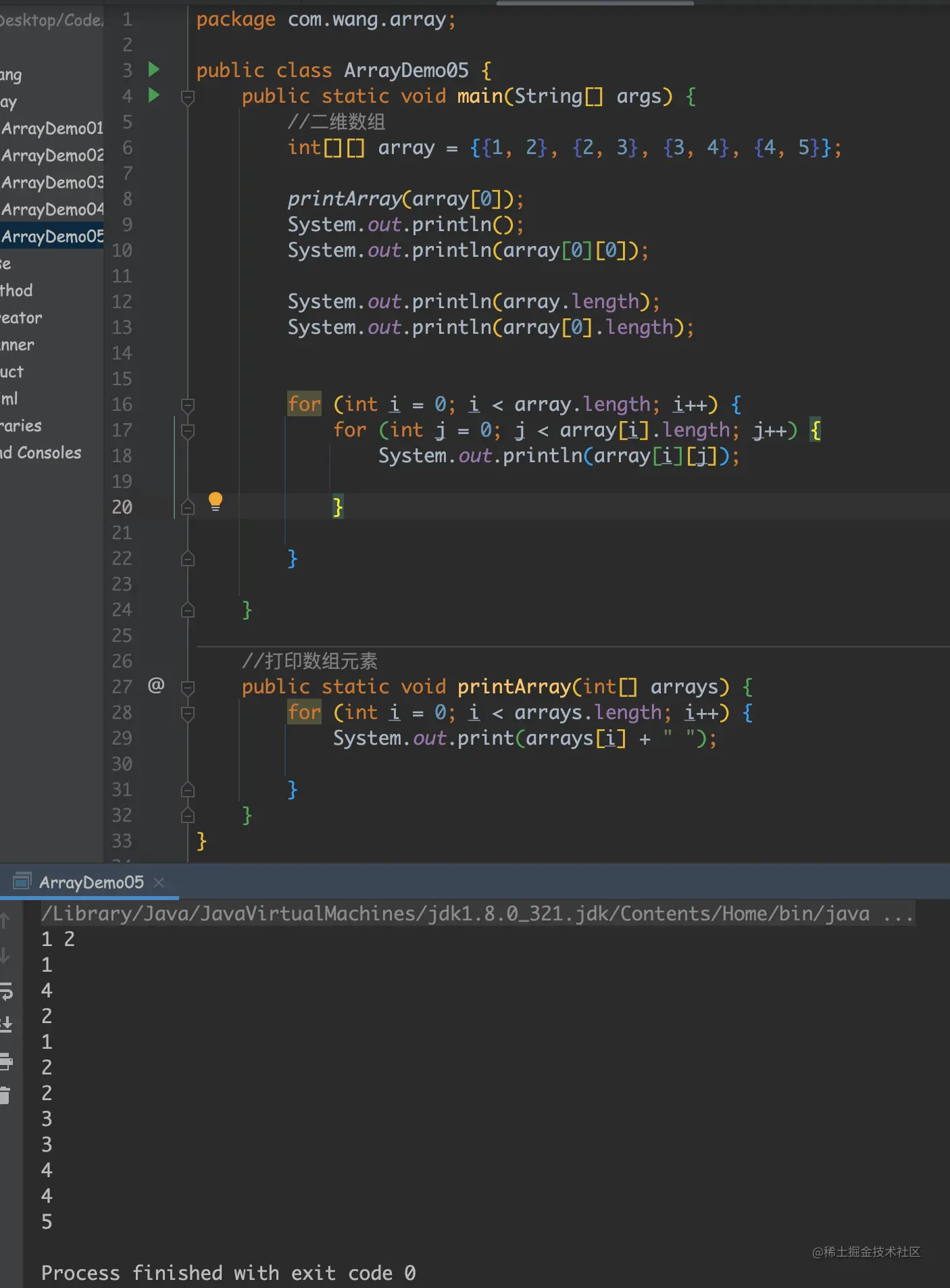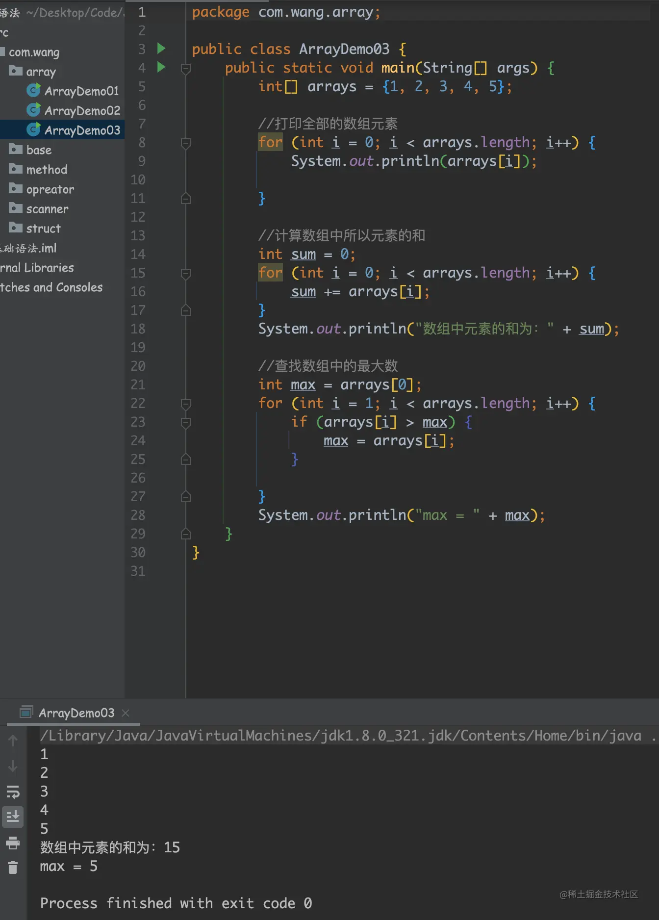 数组的元素类型和数组的大小都是确定的,所以当处理数组元素时候,我们通常使用基本循环或者 For-Each 循环。