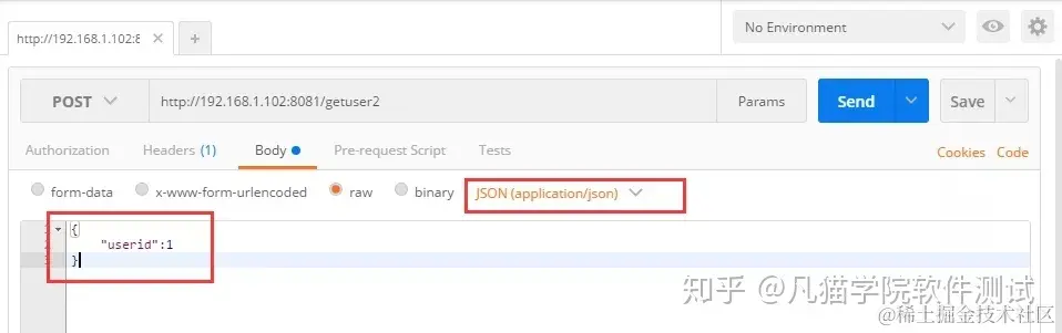 postman测试如下,本次入参为json类型,当然文档中没说非要用json,用其他方式也是可以的