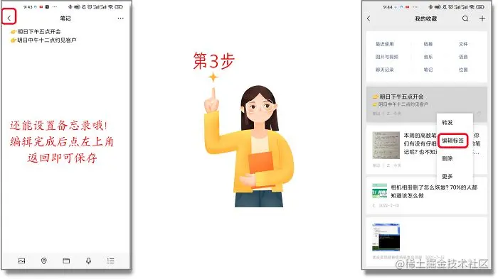 除了制作笔记外还能做备忘录或者计划表等等哦!最后做完笔记后可以通过编辑它们的标签来分类,如图: