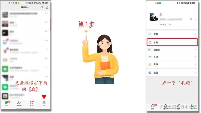 第1步:打开微信后,点一下首页最右下角的【我】,随后进入“收藏”选项;