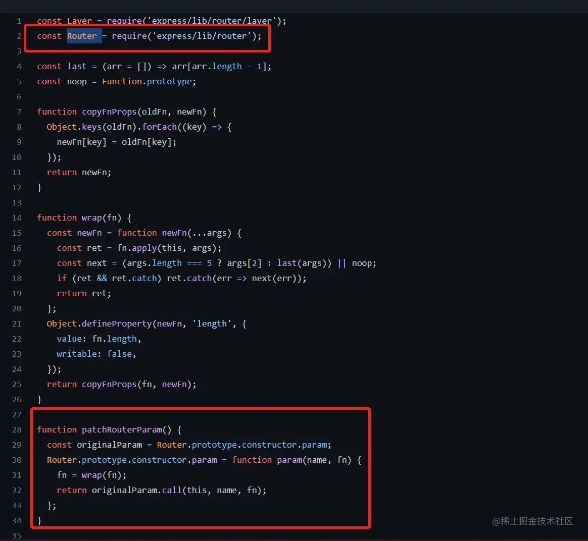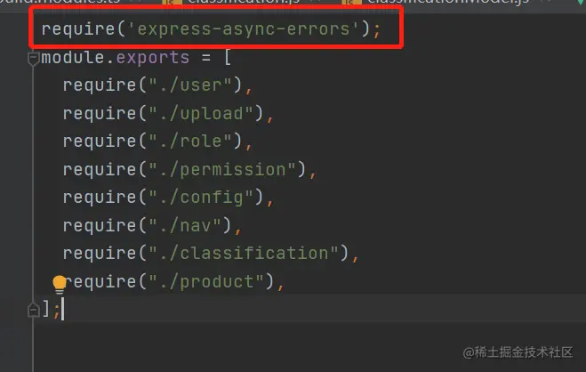 备注:但是这个插件有一个需要注意的地方,官方地址提供的是直接卸载express创建的地方即可生效,但是我的并没有生效,最后发现原因是 express-async-errors 这个插件是和Router对象相关的。如图: