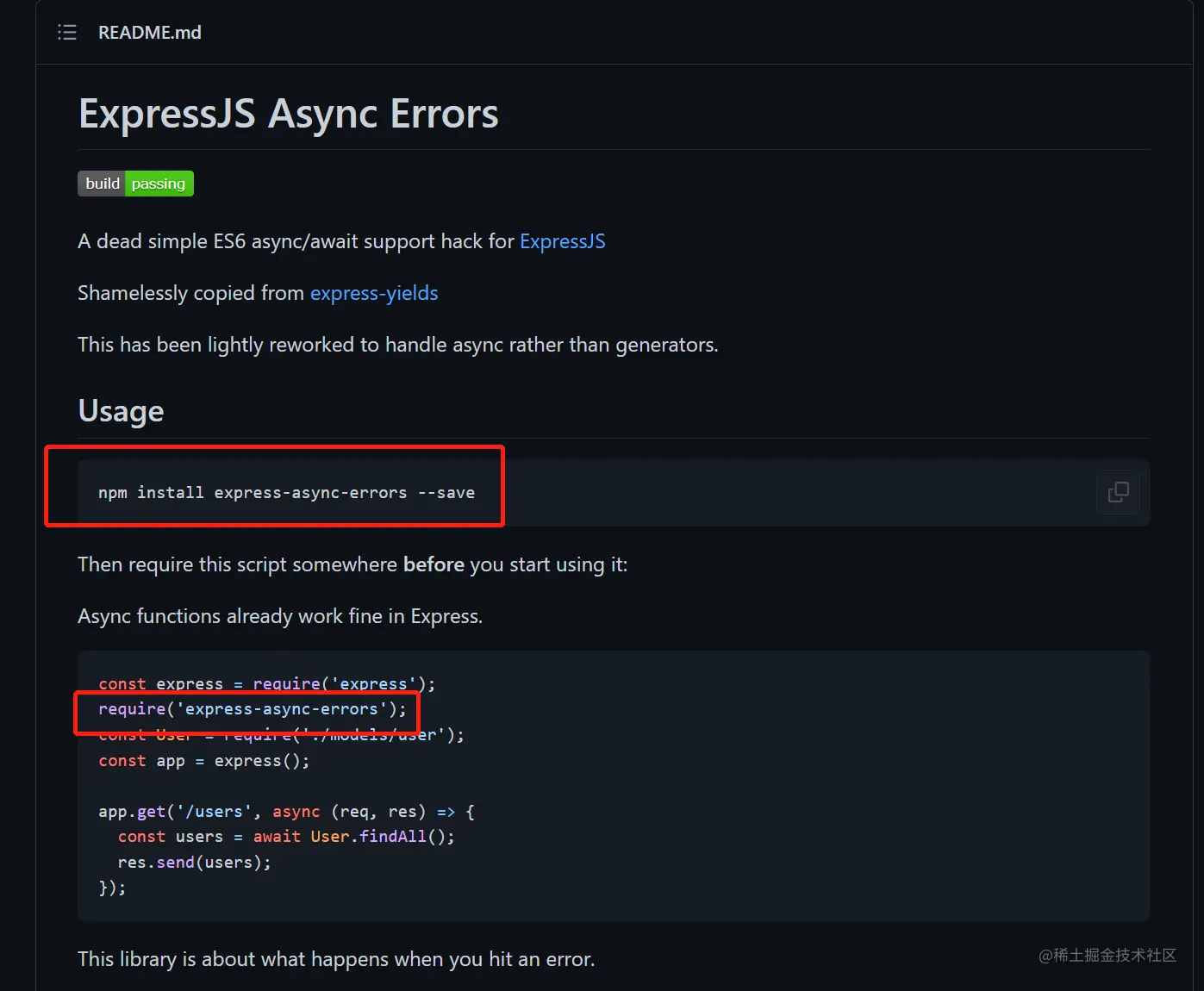 **前言:**在使用express写接口的时候如果出现未知异常没有捕获,就会出现程序抛出异常而退出。提示信息也不是很好。使用普通的全局异常拦截只能拦截到同步代码,不能拦截到promise这些异步函数的方法。在网上查到有一个插件比较方便,这里就提供这个插件使用方法。插件名:express-async-errors