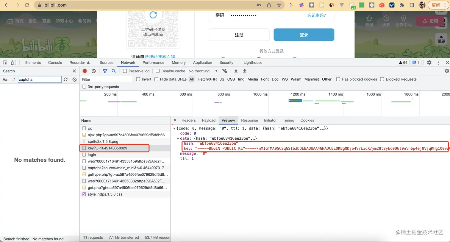 由于验证码的英文是 captcha ,我们在 network 面板里搜 captcha