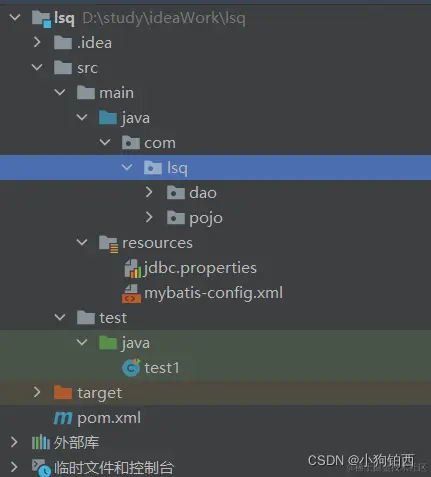 ③创建对应目录:pojo(放置实体类)、dao(编写mapper)