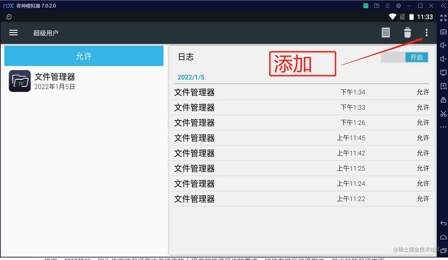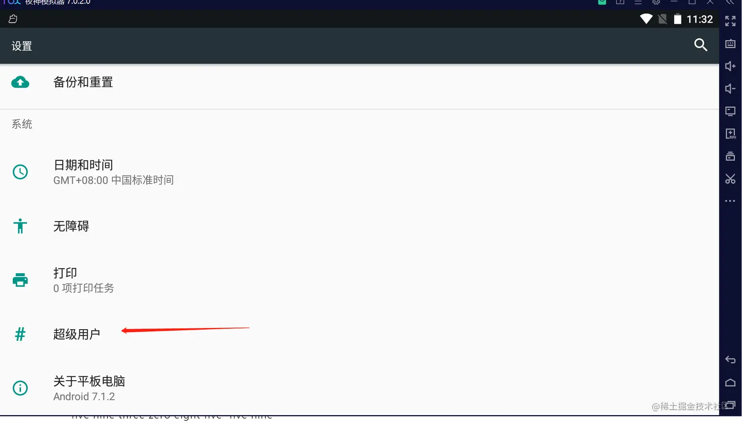 - 首先到模拟器内部设置超级用户权限给文件管理器超级权限