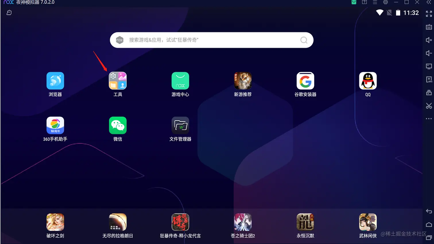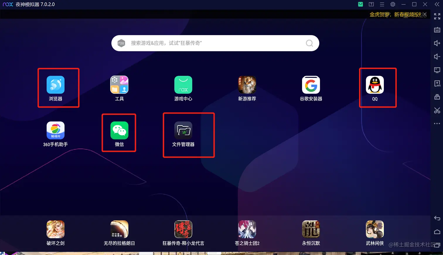 1.打开安装好的安卓模拟器,并在模拟器中安装QQ、微信、RE管理器