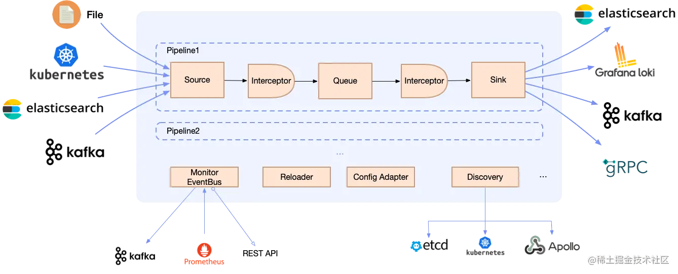 仅从日志的场景来解释,Loggie(github.com/loggie-io/l… 是一个基于Golang的轻量级、高性能、云原生日志采集Agent和中转处理Aggregator,支持多Pipeline和组件热插拔,提供了: