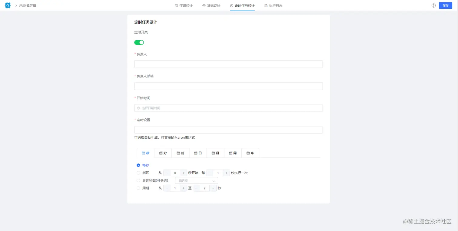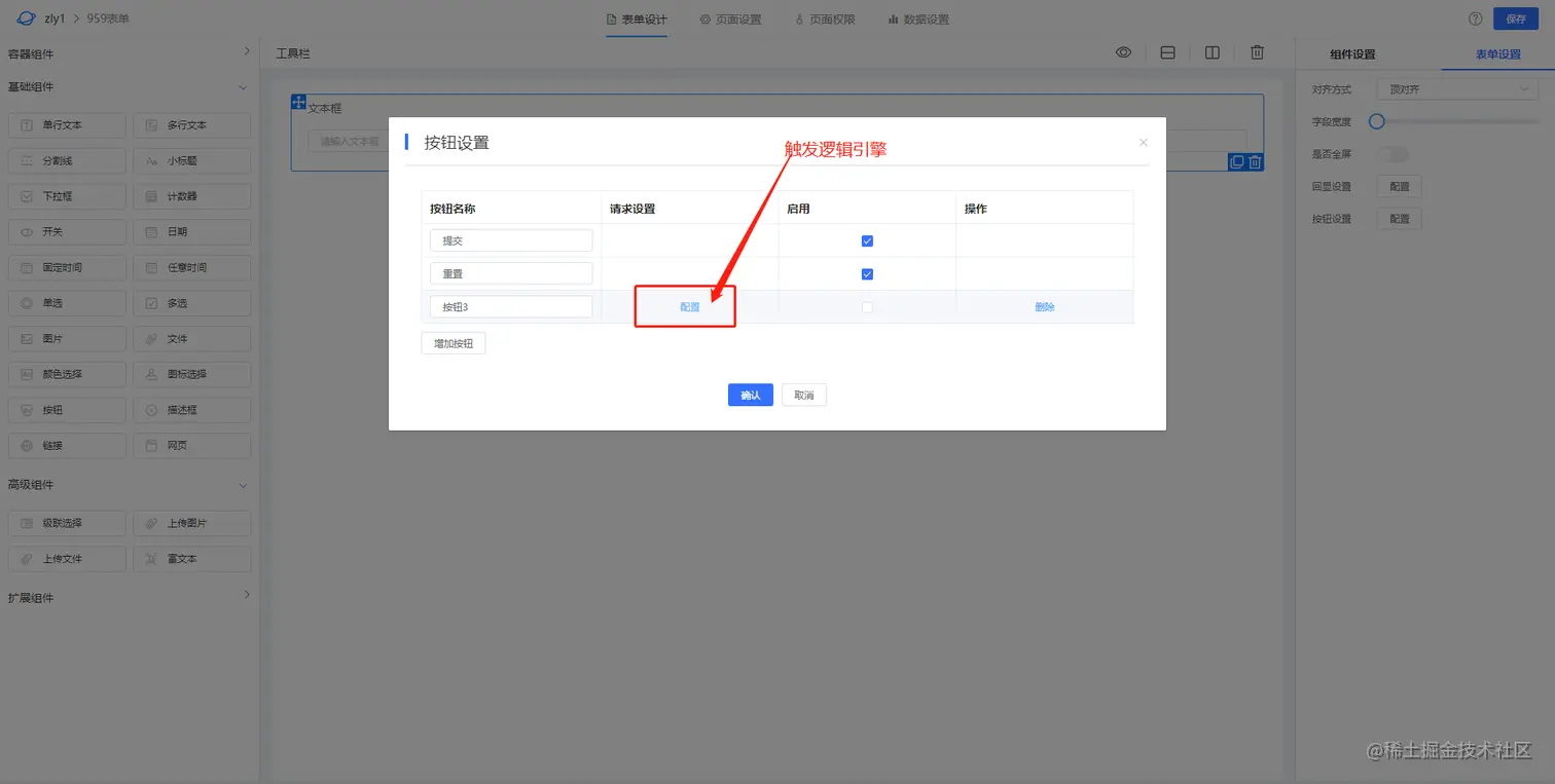 配置界面包括,配置导航栏、逻辑组件、逻辑编排画布、逻辑属性配置