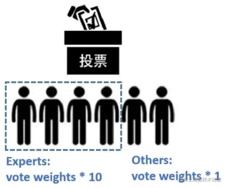 实例迁移的基本思路是给每个数据赋予不同的权重以缓解分布迁移的问题。如下图所示,通过投票的方式解决问题,专家权重较大,非专家权重较小。类似情况是,在模型训练过程中,权重越大表示这个数据点在迁移学习中越重要,因此这个数据对算法训练模型的贡献也会越大。