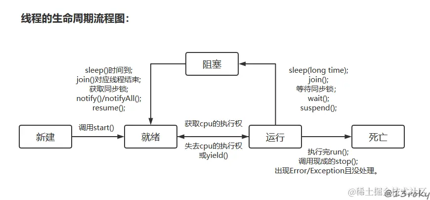 新建线程——>就绪状态——>运行状态——>死亡状态