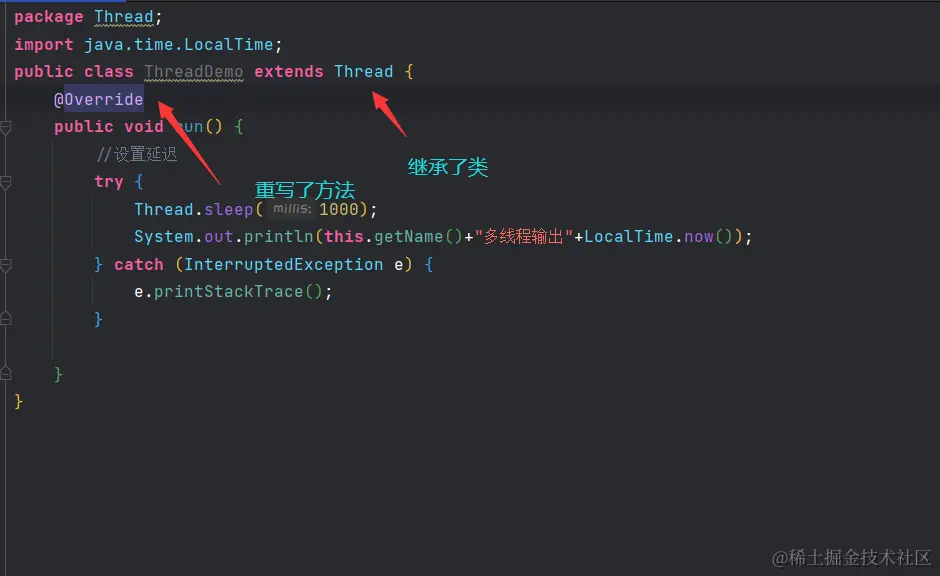 使用Thread类创建线程,我们首先需要继承它,并且重写run方法。