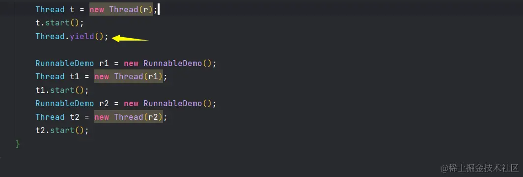 | 1 | public static void yield() 暂停当前正在执行的线程对象,并执行其他线程。 |