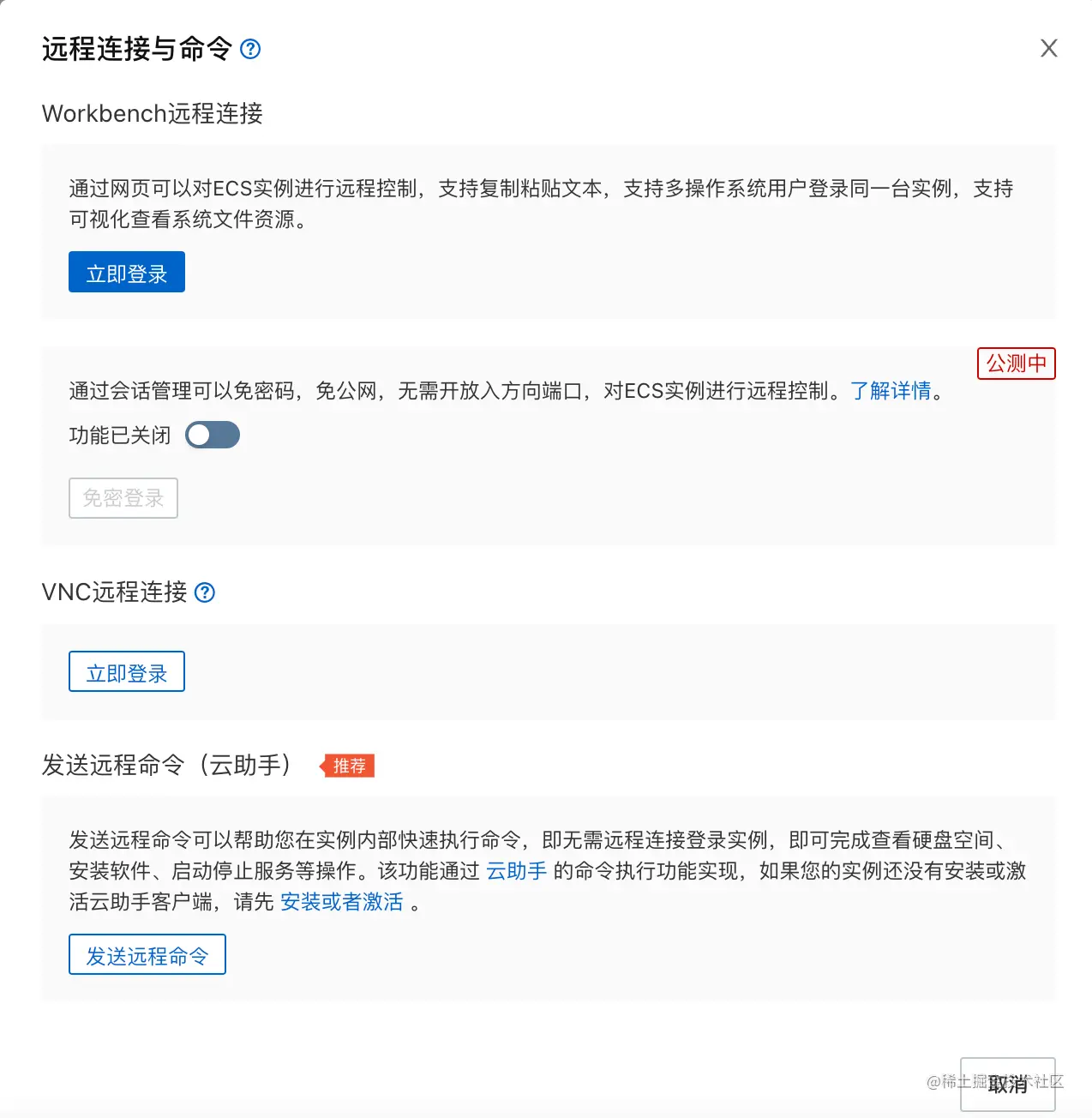 然后我们可以通过 ssh工具 来远程登录我们的服务器,当然可以选择阿里云平台给我们提供的在线工具: