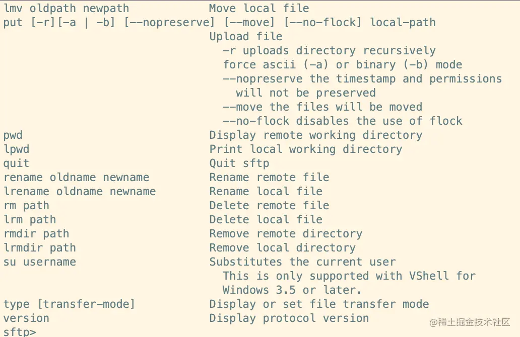 在SFTP中命令行分为local和remote俩种,大致的区别就是命令前面带个l。