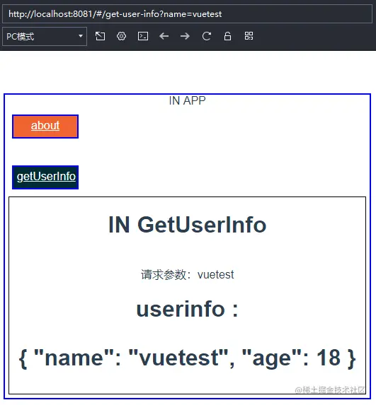 <router-link to="/get-user-info?name=vuetest" class='btn' active-class="active">getUserInfo</router-link>
