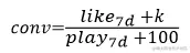 like7d和play7d分别表示最近7天歌曲在平台内的收藏人数和播放人数,k用于调节初始转化率。这部分表示使用冷启动歌曲的标签维度的转化率表示冷启动歌曲转化率。