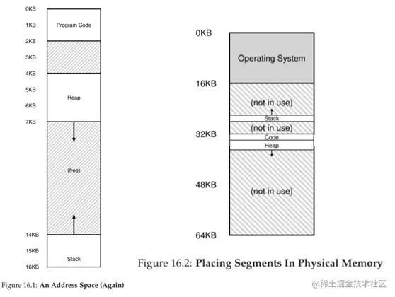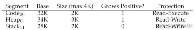 它的基本思想就是,在地址空间的每个逻辑段(代码区、堆栈区、堆区)上都有一对base-bound。目的是将每个段放在物理内存的不同部分,这样就不需要预留那么多空间给地址空间了。