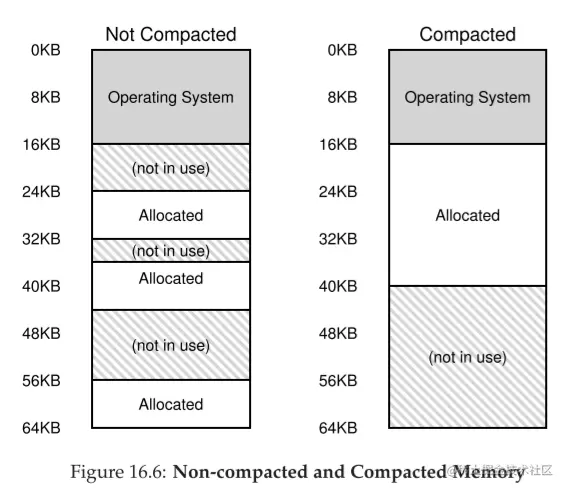 注意一般不会压到右边这样密集,因为这样的话已有进程几乎不能申请新的空间。